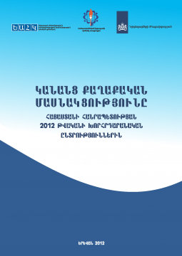 Ուսումնասիրությունը վերլուծում է կանանց մասնակցությունը 2012 թ. ՀՀ խորհրդարանական ընտրություններին: Այն պատրաստվել է Համալսարանական կանանց ասոցիացիայի Գենդերային հետազոտությունների կենտրոնի կողմից ԵԱՀԿ երևանյան գրասենյակի աջակցությամբ և Վրաստանում Նիդեռլանդների Թագավորության դեսպանատան ֆինանսավորմամբ: