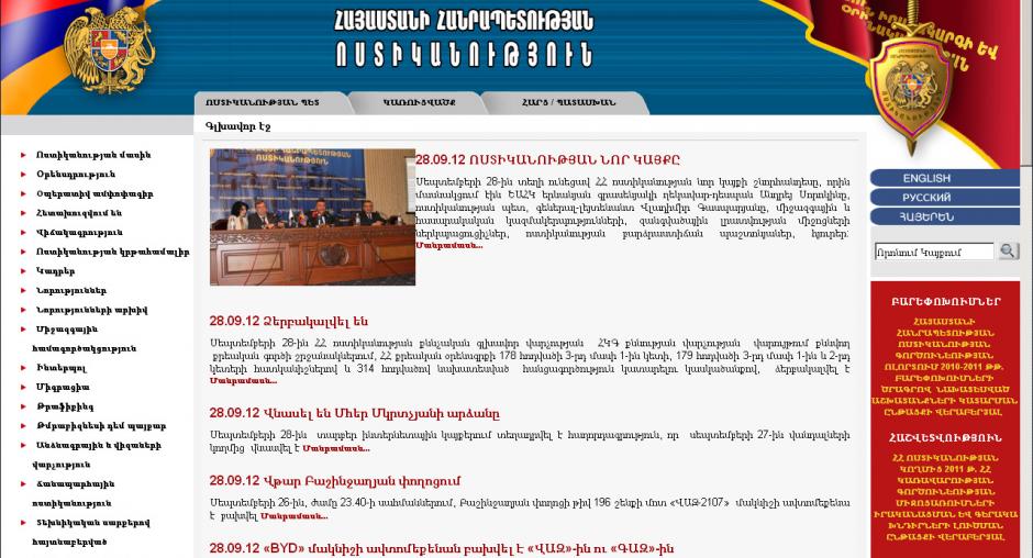 Սեպտեմբերի 28-ին գործարկվեց Հայաստանի ոստիկանության նոր պաշտոնական վեբ կայքը, որը մշակվել է ԵԱՀԿ երևանյան գրասենյակի աջակցությամբ: