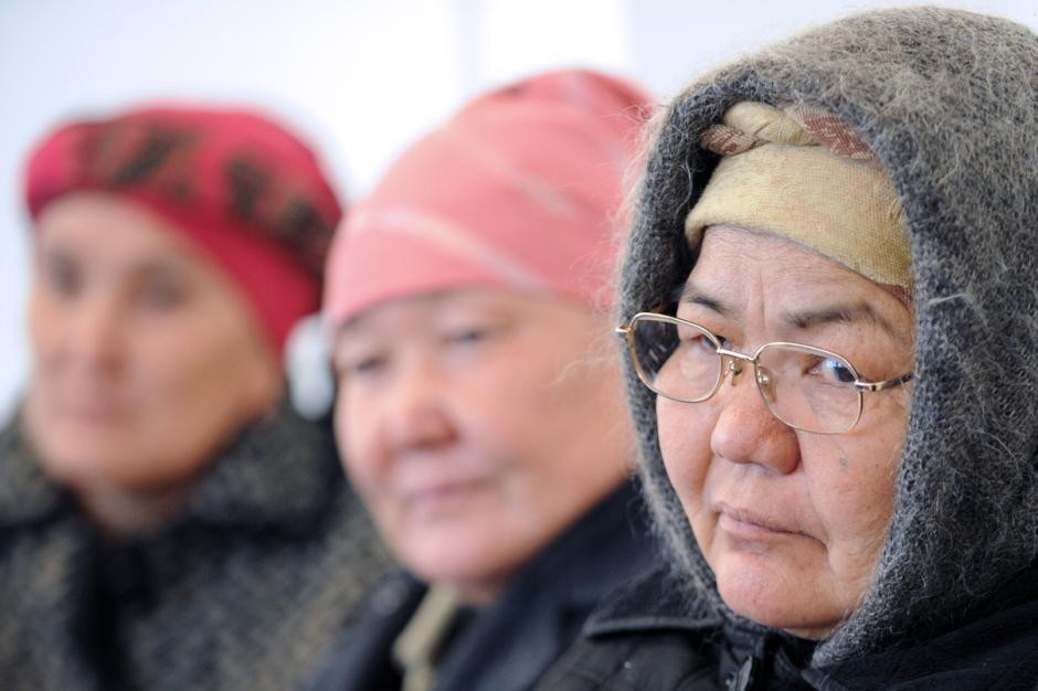 Donne del luogo partecipano a un incontro con il team dell’Iniziativa di Sicurezza Pubblica di Osh nella stazione di polizia di Kara-Suu, dove discuto temi legati al genere e la polizia il 16 marzo 2012.