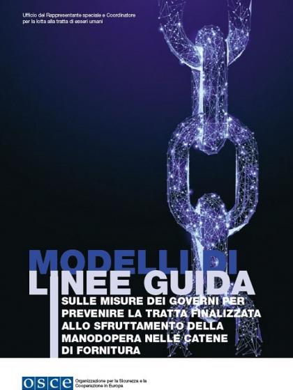 La finalità dei presenti Modelli di linee guida è di fornire agli Stati partecipanti dell’OSCE e ai Partner per la cooperazione uno strumento pratico per l’attuazione di misure concrete volte a prevenire la tratta di esseri umani nelle catene di fornitura. Il documento illustra come gli Stati possano varare leggi e politiche che favoriscano la trasparenza al fine di garantire che le catene di fornitura pubbliche siano scevre da qualsiasi forma di tratta finalizzata allo sfruttamento del lavoro e che il reclutamento della manodopera avvenga secondo criteri equi ed etici.