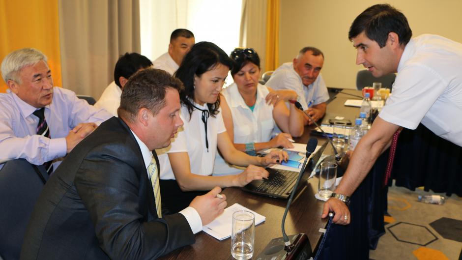 Дмитрий Прудских, Худжанд Орхус орталығының менеджерi, Орхус орталықтарының қызметін дамыту стратегиясын әзірлеу жөніндегі қатысушылар үшін оқу-жаттығу жиынын өткізуде, Астана, 1 шілде 2015 ж.