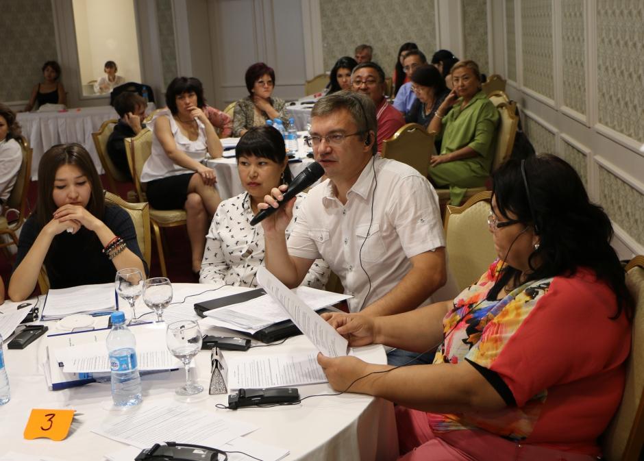 ҰАТ қатысушысы Сергей Молчанов практикалық жаттығудың нәтижелері бойынша топтың қорытындыларын ұсынуда, Астана, 25 тамыз 2017 ж.