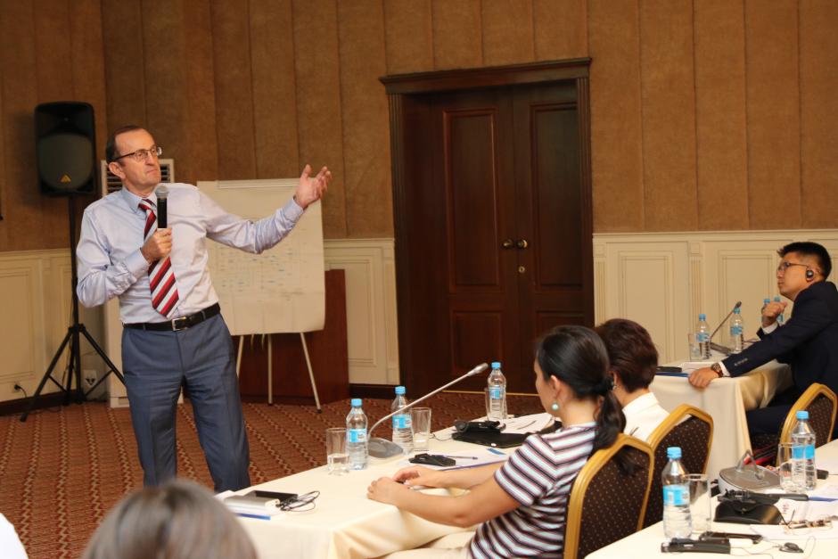 Халықаралық сарапшы Клаудио Стролиго сыбайлас жемқорлық қылмысы нәтижесінде табылған табыстарды ақтау түрлері тақырыбы бойынша баяндама оқиды, Алматы, 2 тамыз 2019 ж.