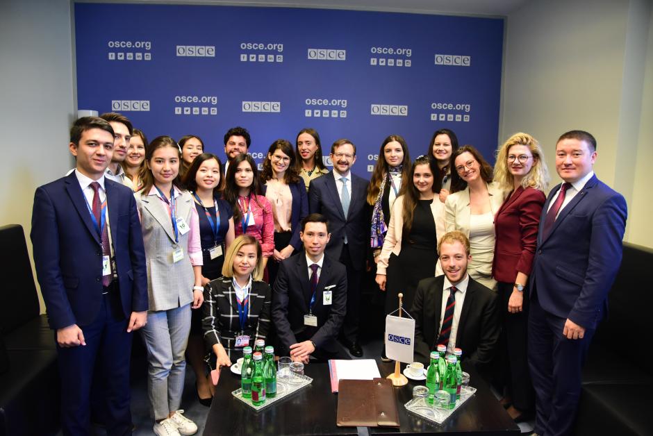 ЕҚЫҰ Бас хатшысы Томас Гремингер (ортада), Орталық Азия жастар желісінің (CAYN) қатысушыларымен және Албанияның Жастар консультативтік тобымен кездесу барысында, Вена, 4 қазан 2019 ж.