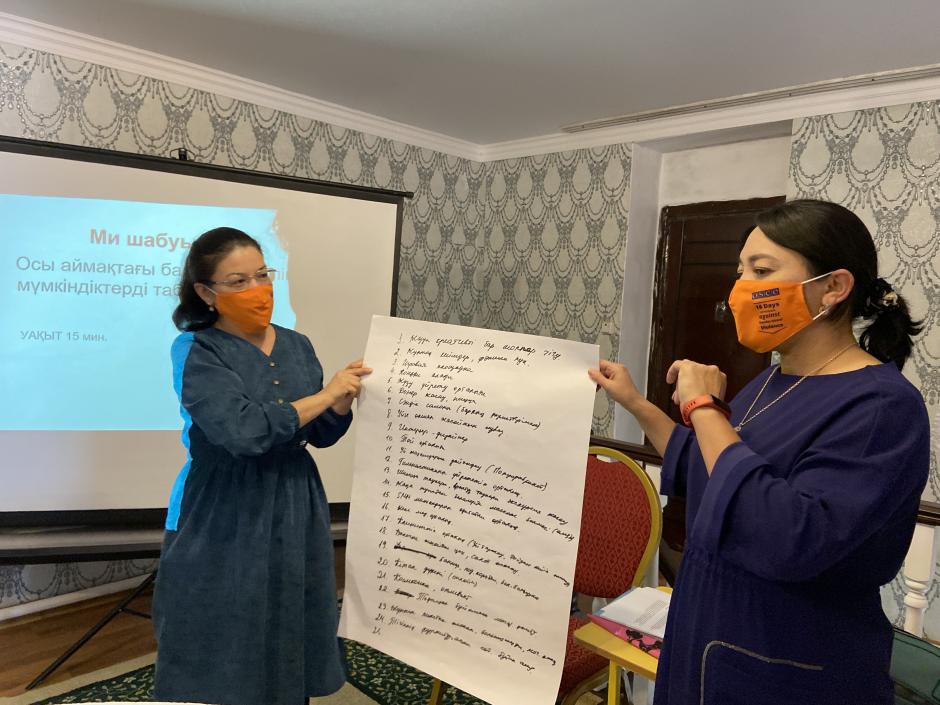 Тренинг қатысушылары топтық жаттығуды талқылауда, Арал қаласы, Қызылорда облысы, 25 қараша 2021 ж.