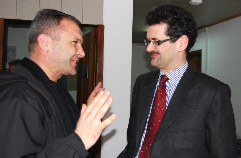 Ambassador Werner Almhofer (r), Head of the OSCE Mission in Kosovo, meets Radojca Mrdjinac, President of the Strpce/Shterpce muncipal assembly, during his first visit to the region, 5 March 2009.