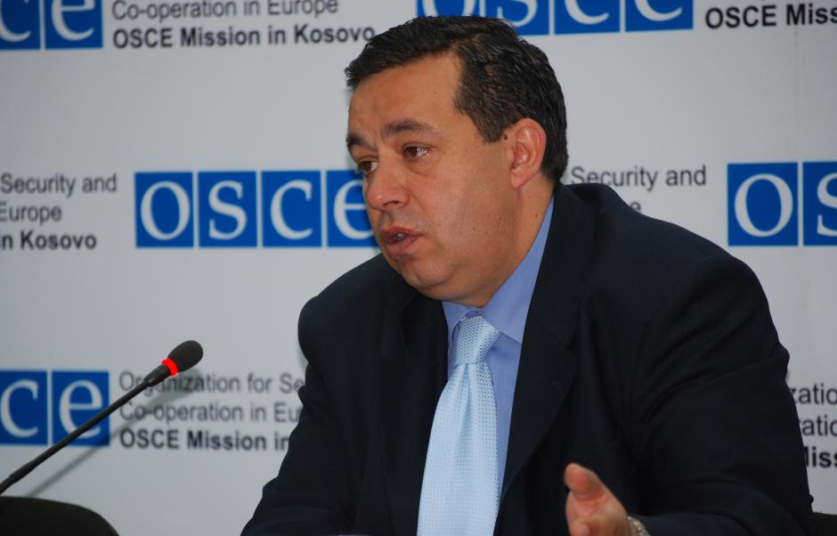 Kosovo's Deputy Minister of Education, Bojan Stojanovic, answers journalists' questions on the OSCE Mission's report on non-majority communities in the Kosovo education system, Prishtine/Pristina, 29 April 2009.