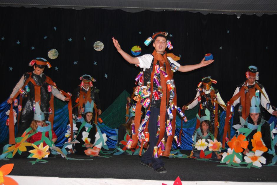 Students of Jeta Re secondary school in Suharekë/Suva Reka during a performance at the city's cultural house, part of the OSCE Mission in Kosovo's activities to mark Earth Day, Suharekë/Suva Reka, 22 April 2009.