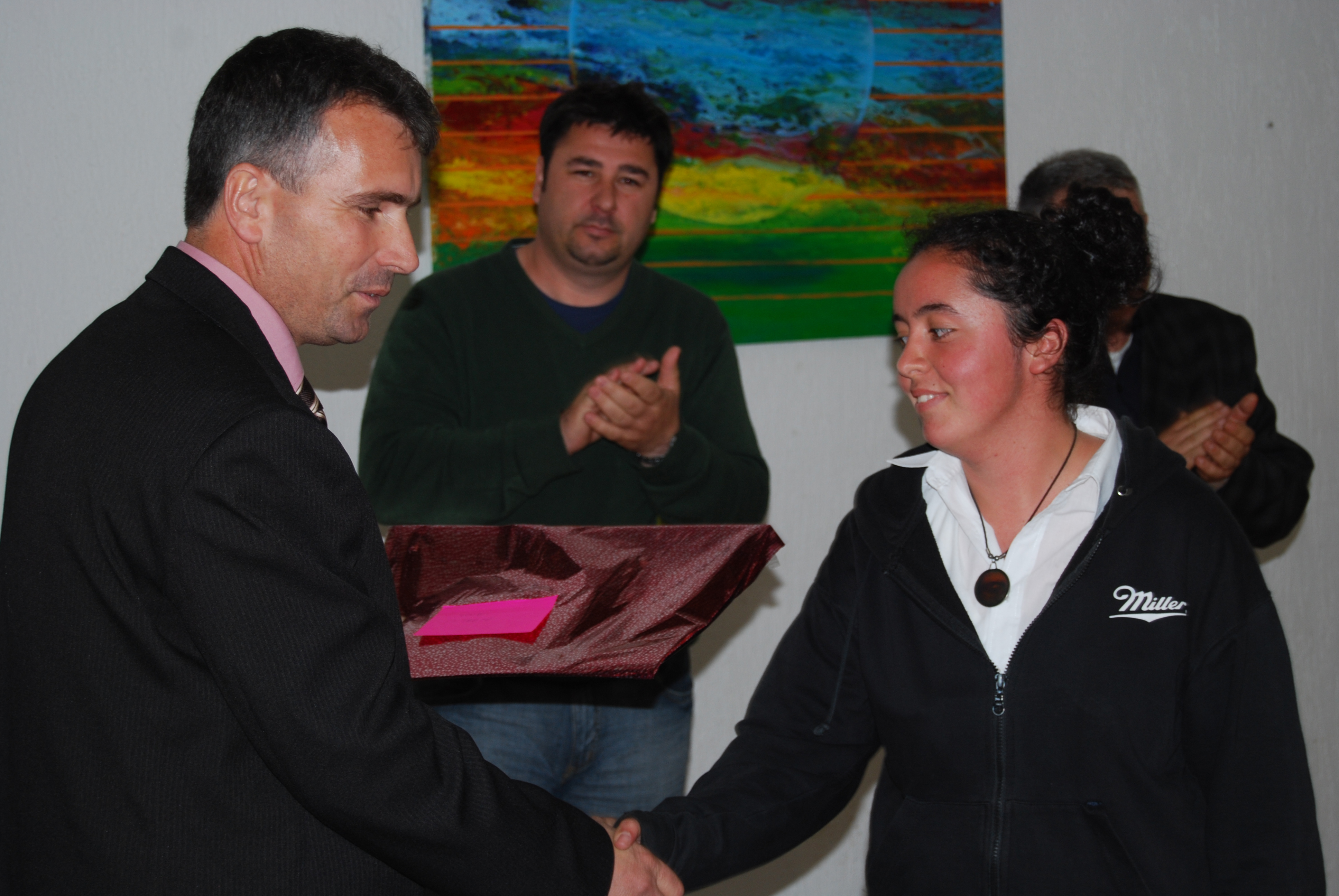 Refki Gegaj, Director of the Department of Special Planning and Environment, Suharekë/Suva Reka municipality, awards an art prize to a student of Jeta Re secondary school, as part of OSCE Mission's activities to mark Earth Day, 22 April 2009.