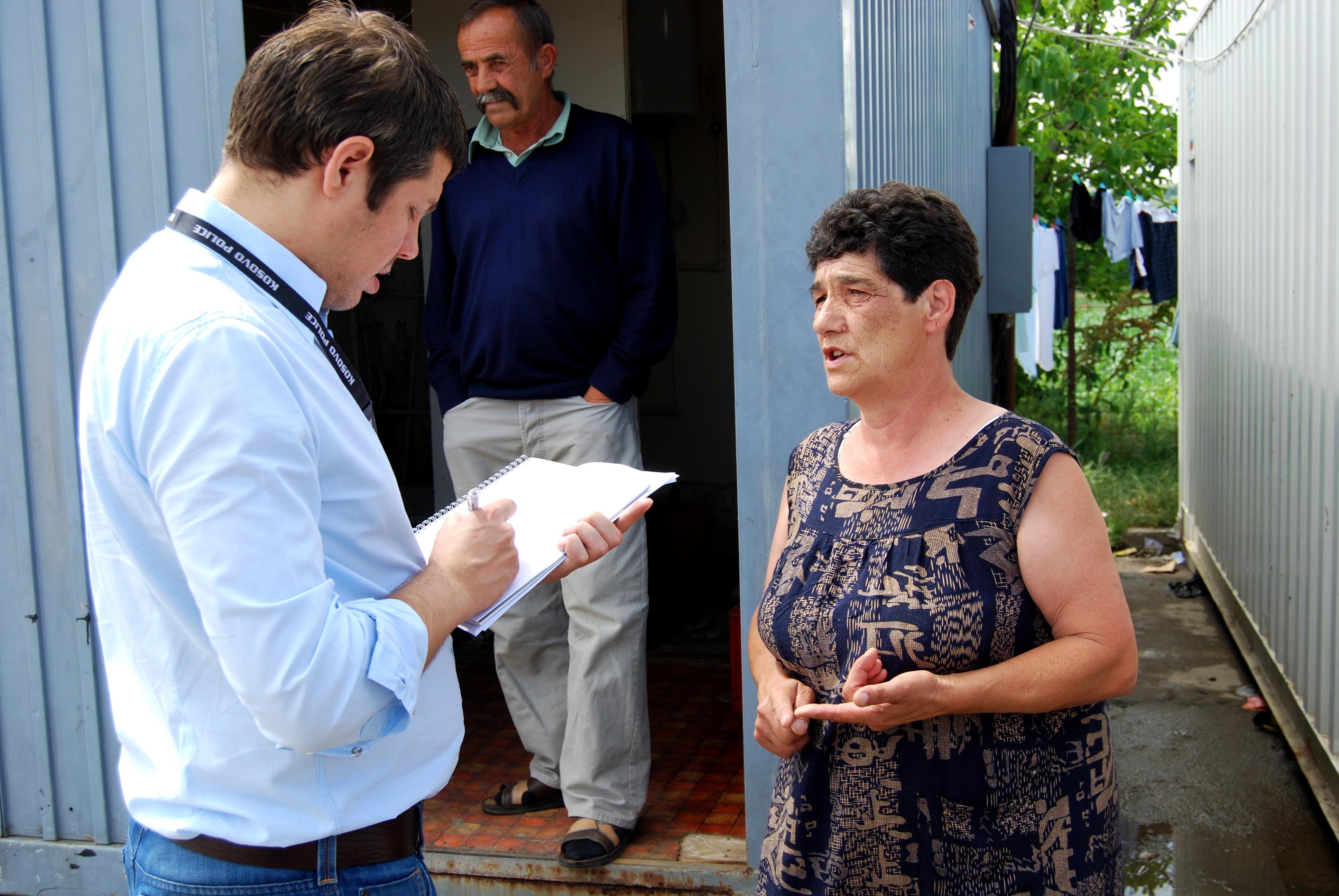 Olgica Subotic (r) explains to OSCE Mission in Kosovo Senior Public Affairs Officer Nikola Gaon (l) the dire living conditions at the Vocar settlement in Gracanice/Gracanica, Kosovo, 18 June 2009.
