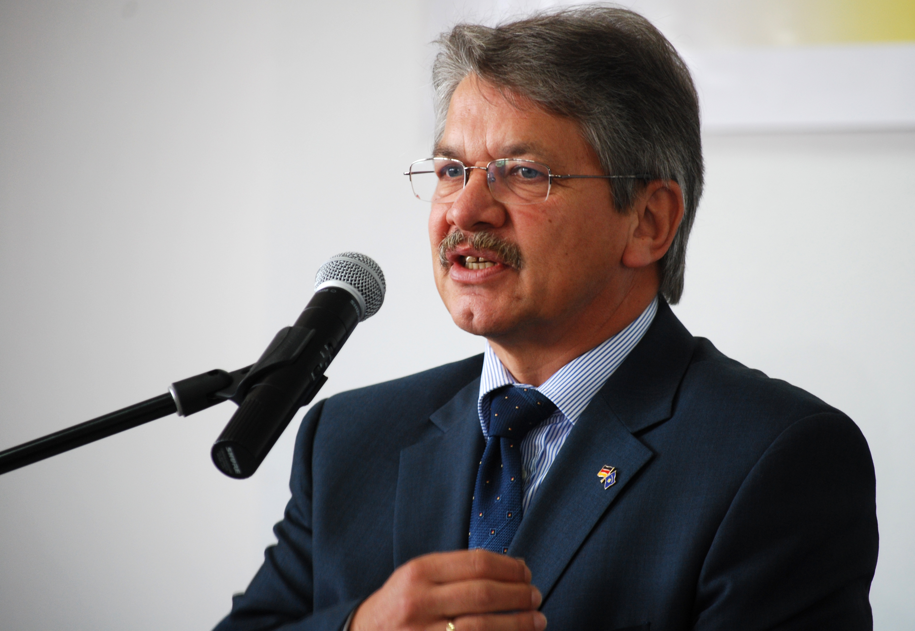 German Ambassador Hans-Dieter Steinbach speaks at a handover ceremony for equipment donated by his government to the Security and Public Safety Agency in Kosovo, Vushtrri/Vucitrn, 20 July 2009.