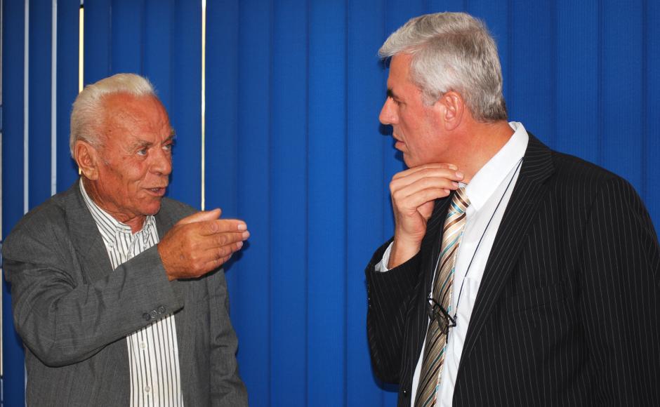 Sami Kurteshi, Kosovo's first local Ombudsperson (r), listens to the concerns of a local Serb after a press conference organized by his institution and the OSCE Mission in Kosovo at the media centre in Gracanica/Gracanice, 8 September 2009.