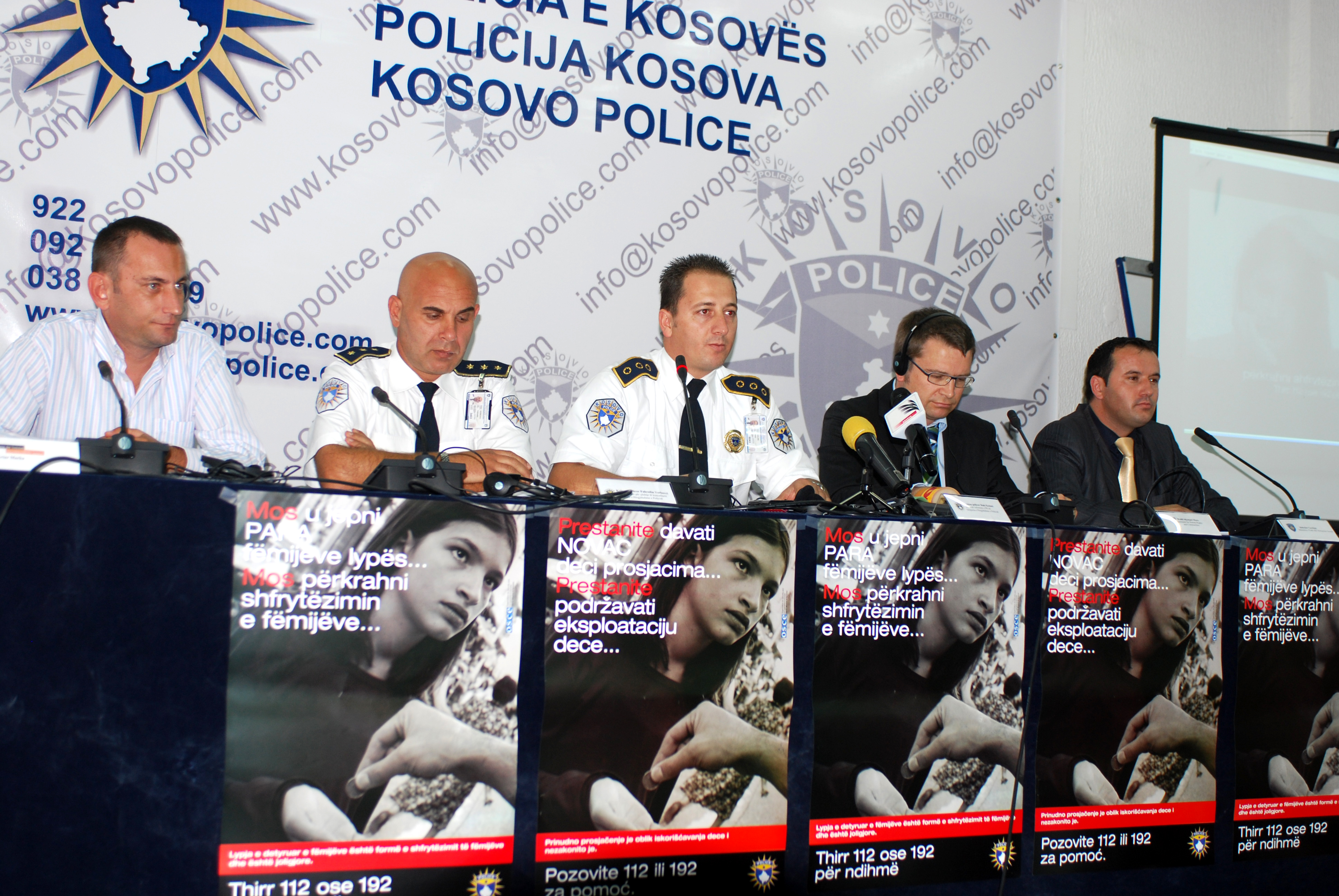 A panel consisting of representatives from the OSCE, Kosovo police, Ministry of Labour and Social Welfare and Terre des Hommes talk to the media at the launch of an OSCE-sponsored campaign to combat child begging, Prishtine/Pristina, 9 October 2009.