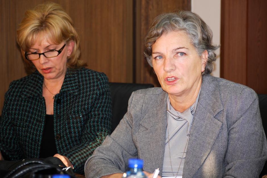 Remzije Brovina, a judge at the municipal court in Prishtine/Pristina, talks about women's equal right to property and inheritance during a workshop organized by the OSCE Mission in Kosovo, 30 October 2009.
