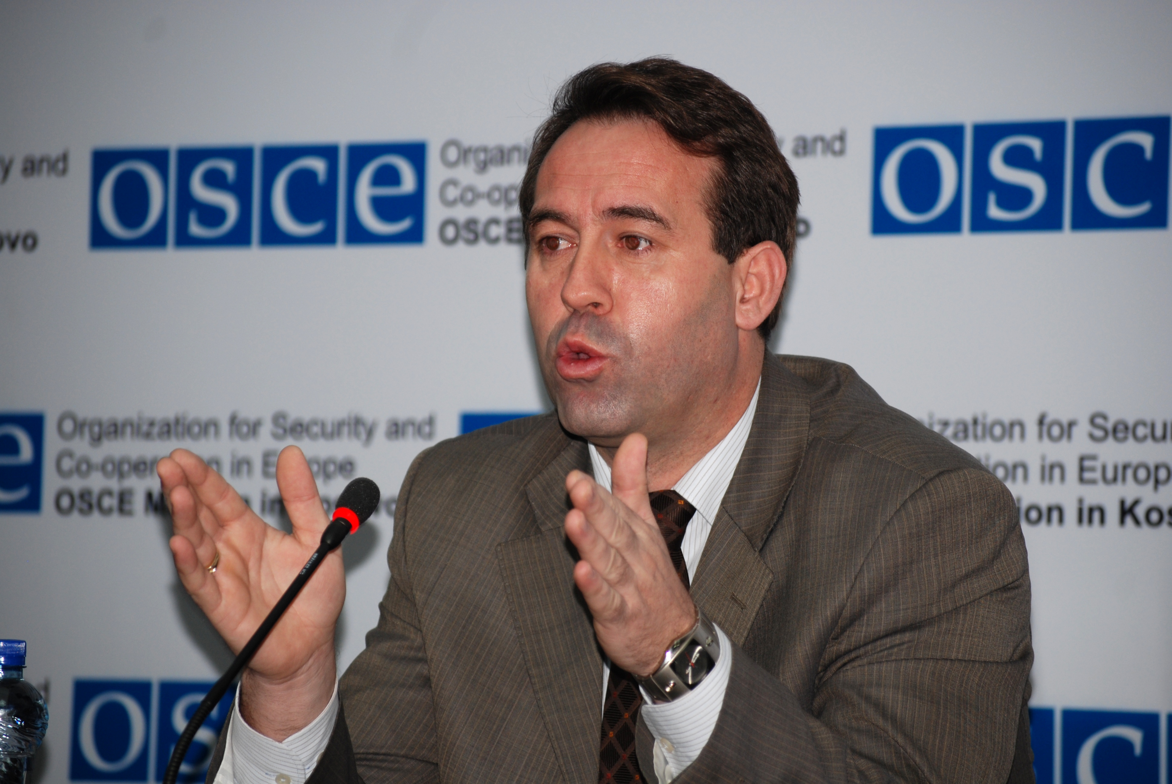 Bahri Hyseni, Head of Kosovo's Assembly Committee for Legislation and Judicial Affairs, gives his view at the launch of the OSCE Mission in Kosovo's campaign in support of the Independent Oversight Board, Prishtine/Pristina, 14 December 2009.