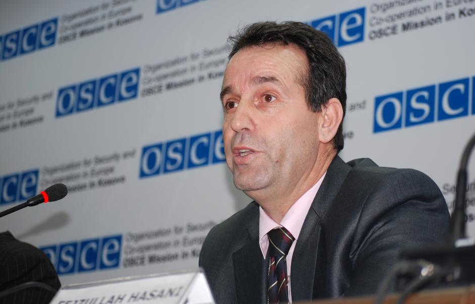 Fejzullah Hasani, the newly-elected President of Kosovo's Supreme Court, speaks at a media event on the findings of an OSCE Mission in Kosovo report on detention in criminal proceedings, 15 March 2010.