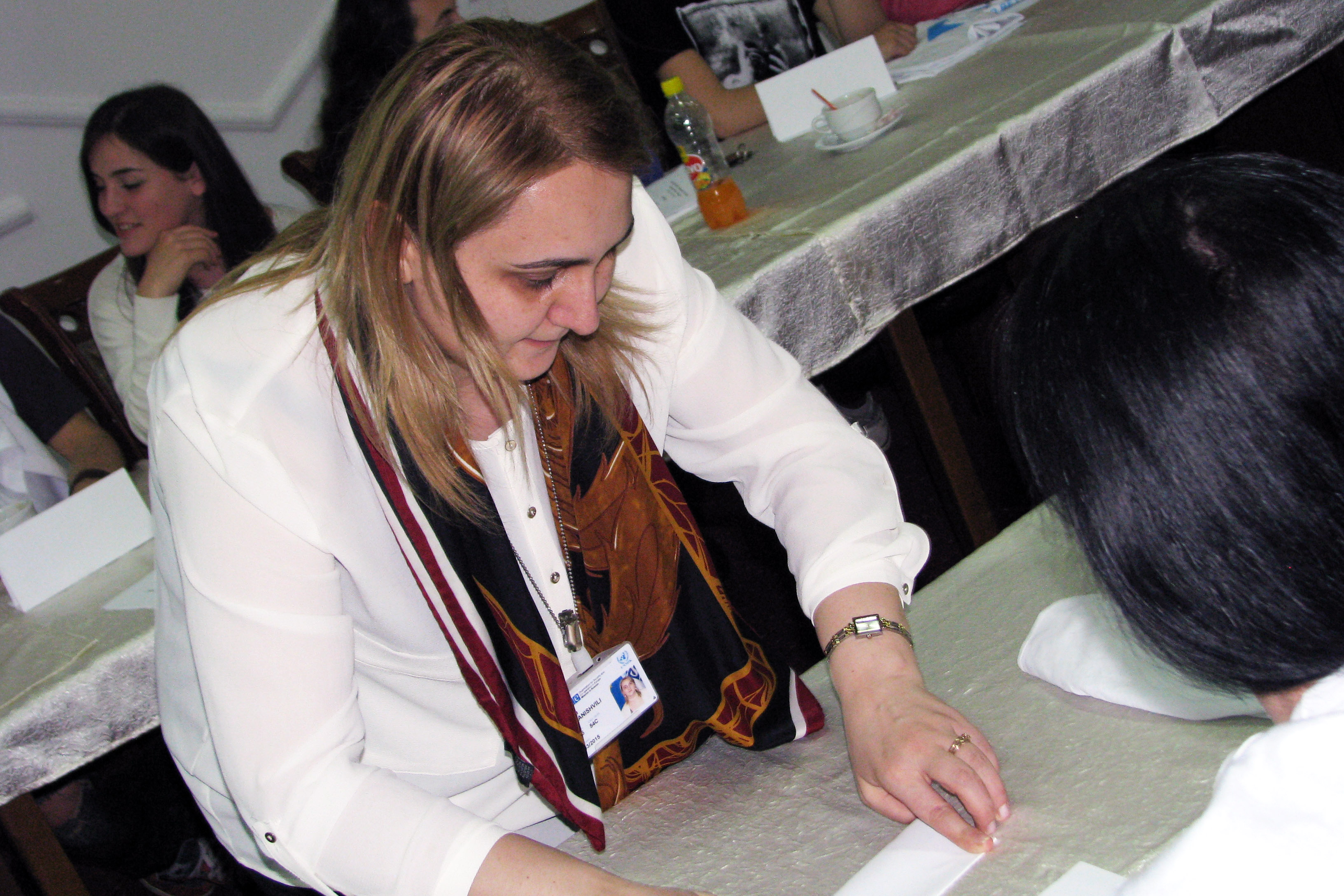 Tinatin Bezhanishvili, OSCE's Senior Community Policing Officer, prepares for a session on advocacy skills,Kosovo, 9 April 2014.