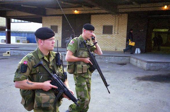 KFOR soldiers keep a watchful eye on the premises of the OSCE's