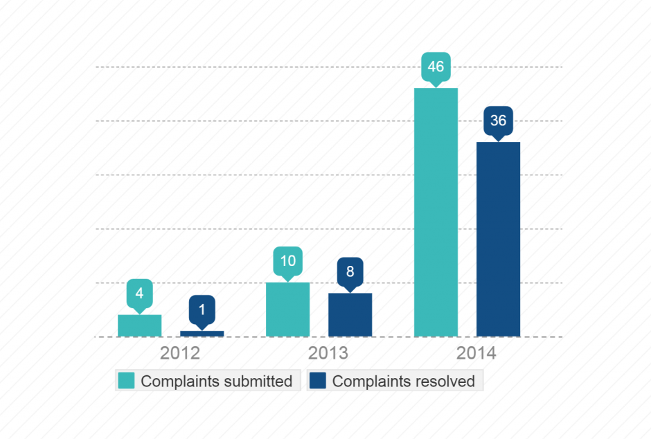 Complaints received and resolved by the Office of the Language Commissioner in Kosovo.