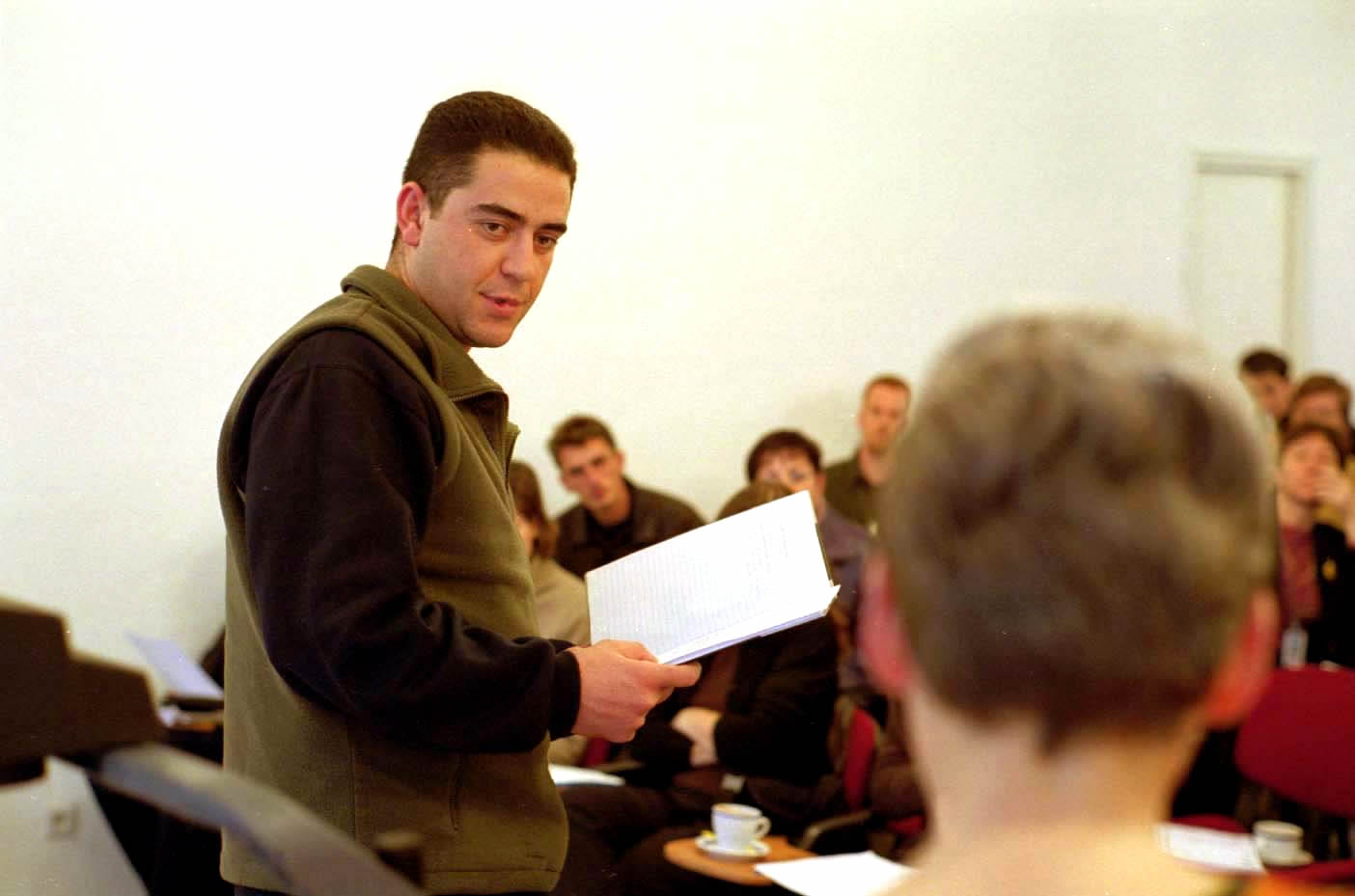 A staff member from the OSCE Mission in Kosovo leads a seminar on international standards for democratic elections, January 2001.