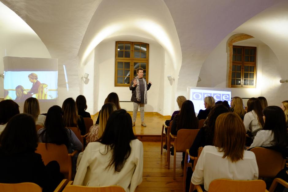 OSCE Deputy Head of Mission Paivi Nikander addresses participants during a closing ceremony at the OSCE Dialogue Academy in Stadtschlaining, 5 December 2015.