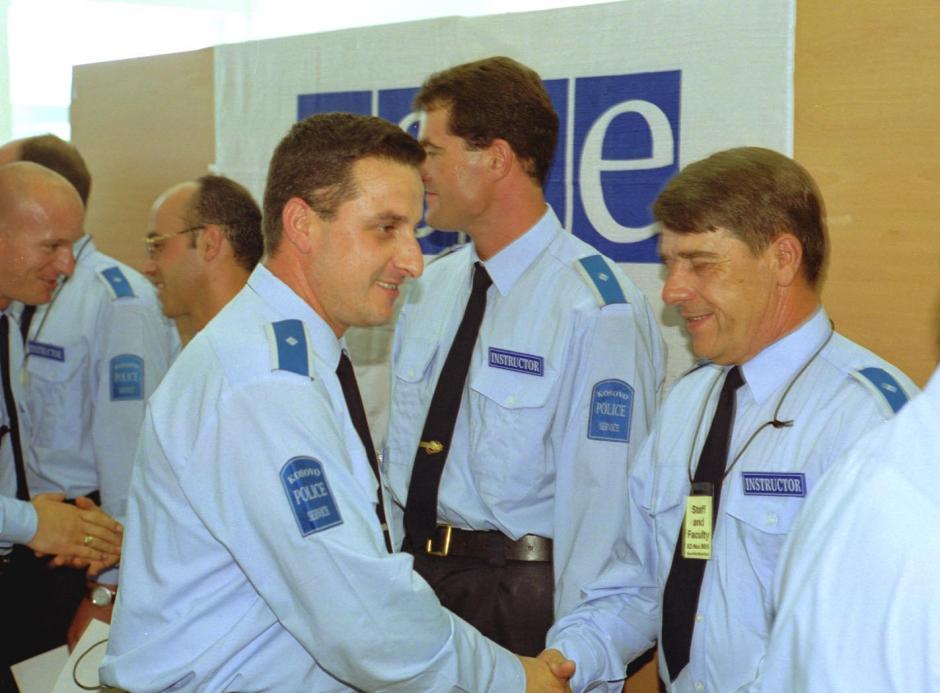 The first Kosovo Police Trainers graduating from the Kosovo Police Service School in August 2001. These Associate Instructors now act as certified trainers for all cadet classes.