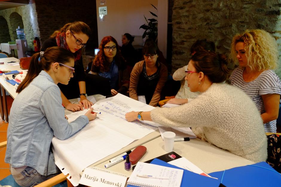 Participants work in group on defining perception and challenges of women in politics, Stadtschlaining, Austria, 6 October 2016.