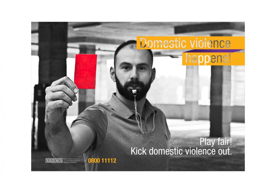 "Play fair! Kick domestic violence out." : A message of the online campaign, encouraging victims to speak up and take action against domestic violence.