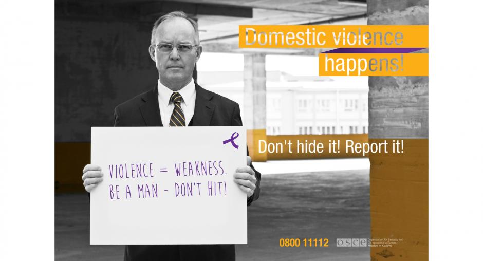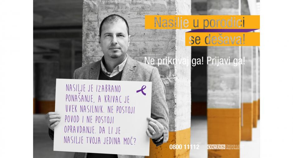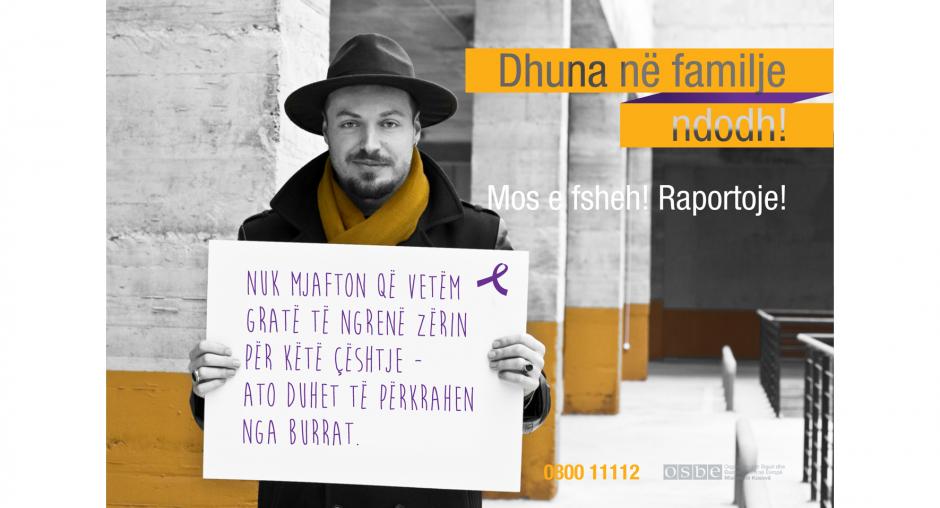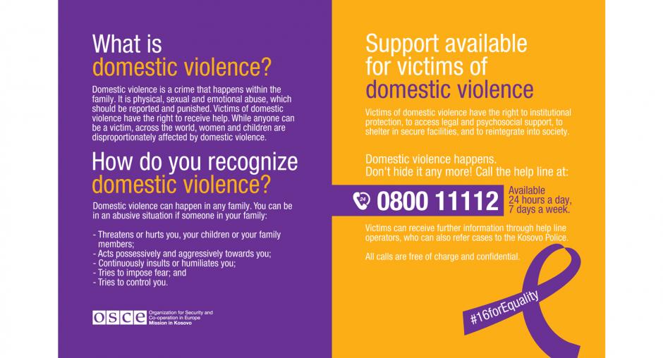 The OSCE Mission in Kosovo ran an online campaign to mark the 16 Days of Activism Against Gender Based Violence - 25 November 2016, International Day for the Elimination of Violence against Women to 10 December, International Human Rights Day - to send the message that domestic violence is a crime and it should be reported. The campaign featured public figures who sent their personal messages against domestic violence, conceptual messages emphasising the importance of speaking up against it and a leaflet with information on what domestic violence is, how to recognize it and what support is available for the victims. The campaign promoted a free helpline and had almost 200,000 reaches on social media.