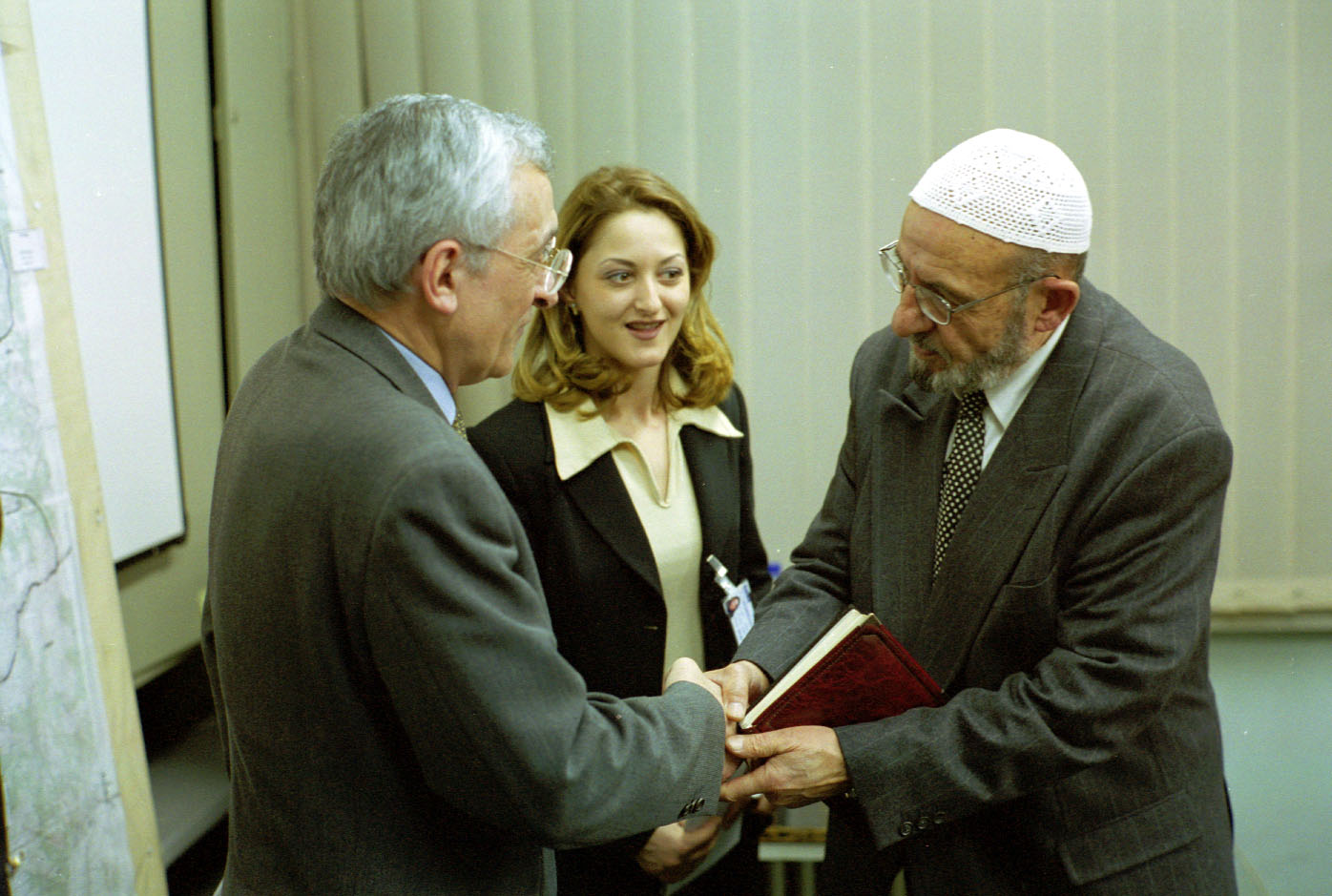 Ambassador Pascal Fieschi (left), OSCE Head of Mission, meets local political leaders in Prizren, southern Kosovo.