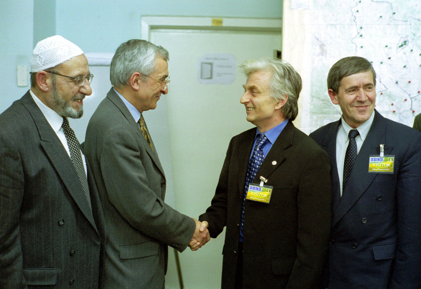 Head of the OSCE Mission, Ambassador Pascal Fieschi (second left), meets local political leaders in Prizren, southern Kosovo.