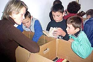 Assisted by the OSCE Mission in Kosovo, Lipjan/Lipljan Town Library mobile team delivers books to primary schools in rural areas providing the public with access to up to date school literature and fiction, April 2005.