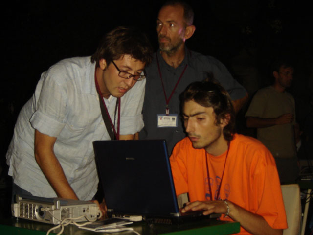 The organizers of Dokufest are film students and professors who deal with all the organizational aspects of the festival, including the screening setups, Prizren, 31 August 2005.