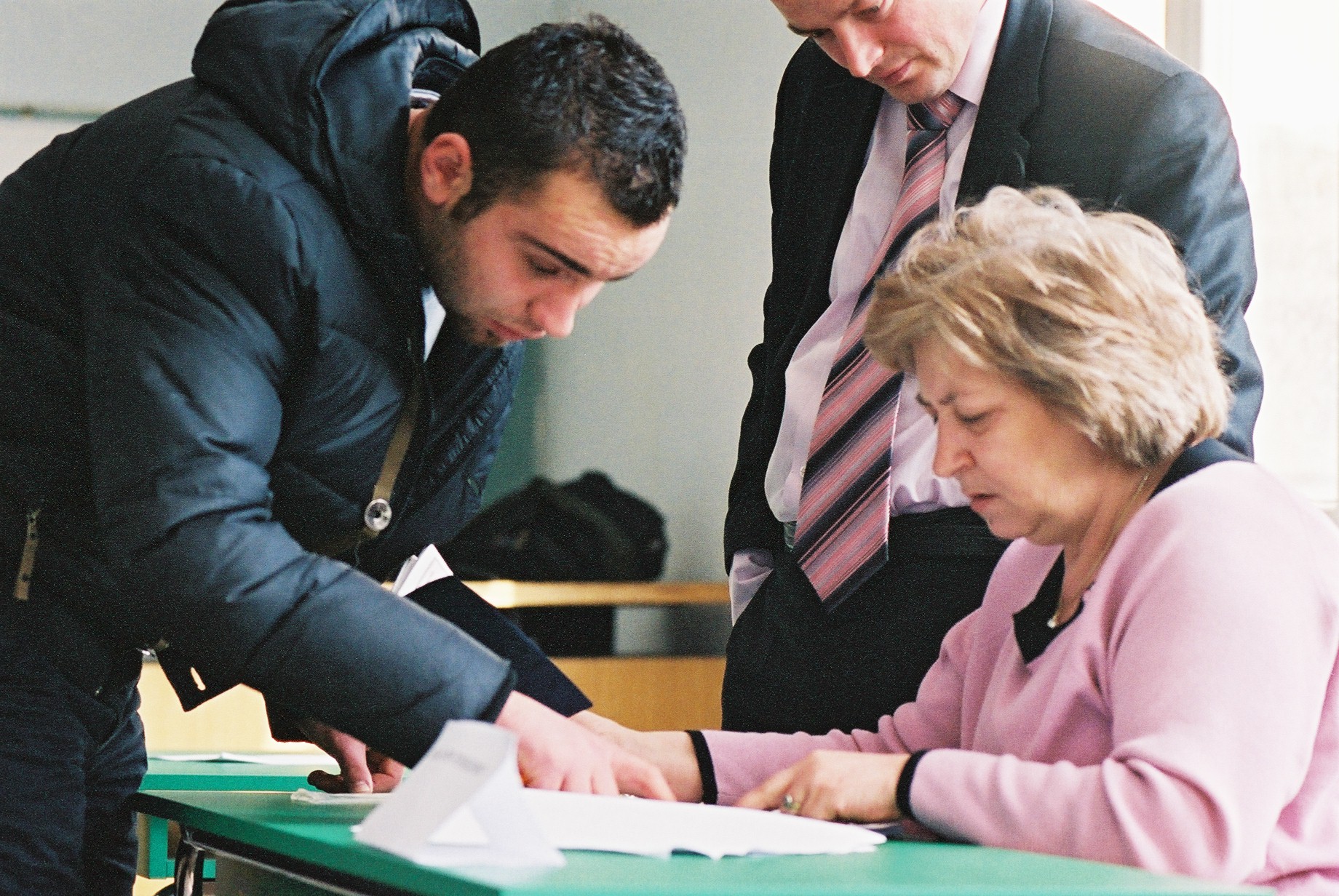 A Pristina University student has his identification verified before voting for student and faculty council representatives, 8 March 2006. The OSCE-supported elections will clear the way for the appointment of a new school rector.