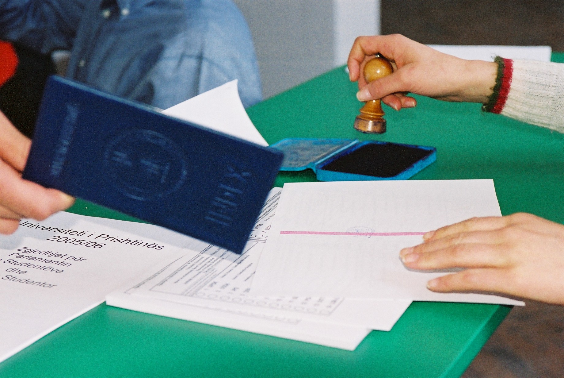 Pristina University students have their identification verified before voting for student and faculty council representatives, 8 March 2006. The OSCE-supported elections will clear the way for the appointment of a new school Rector.