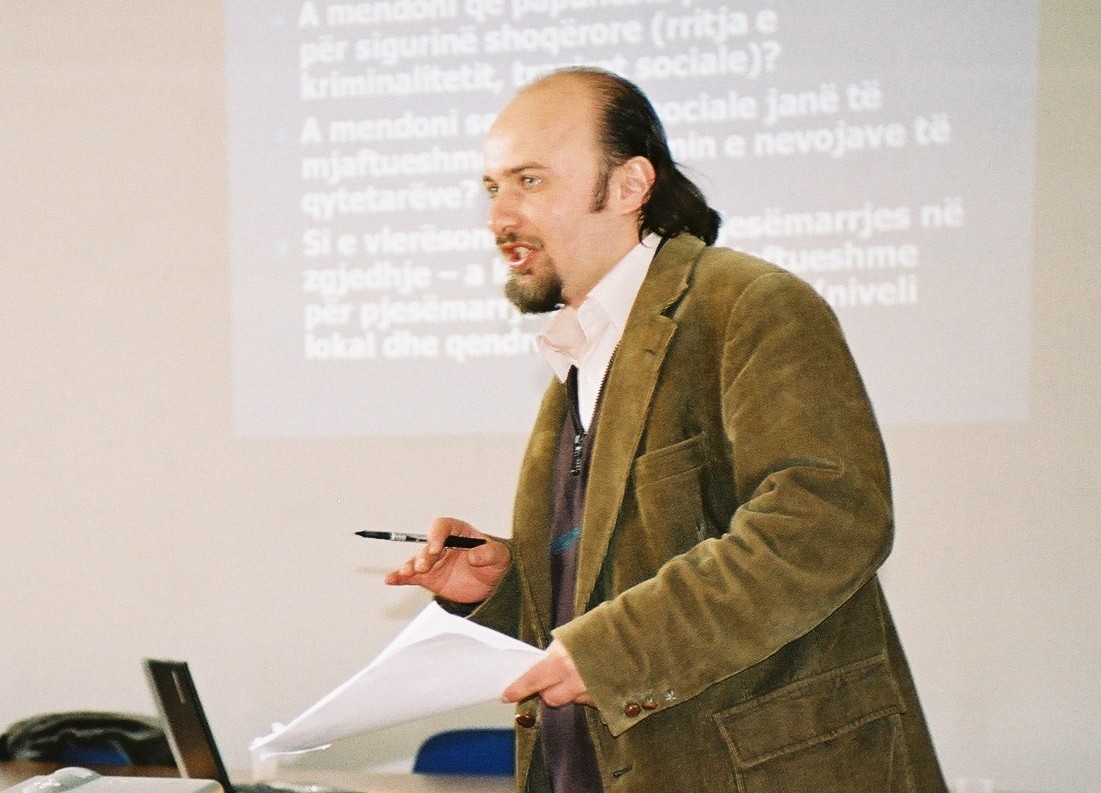 OSCE Democratization Officer Vardon Hoxha facilitates a public discussion on Internal Security Sector Review, a programme aimed at assessing the short and long term development needs of Kosovo's security sector, Lipjan/Lipljan, 1 March 2006.