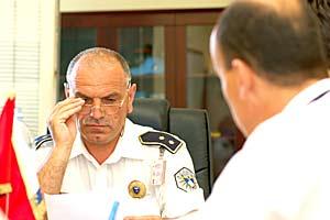 Members of the Kosovo Police Inspectorate visit Mustafe Kllokoqi, Chief of Police Station North, in Pristina, 20 July 2006. The OSCE Mission supported establishing the Inspectorate to help modernize Kosovo's police force.
