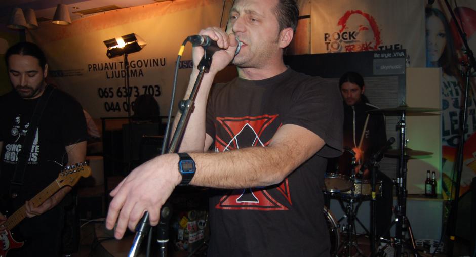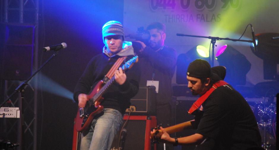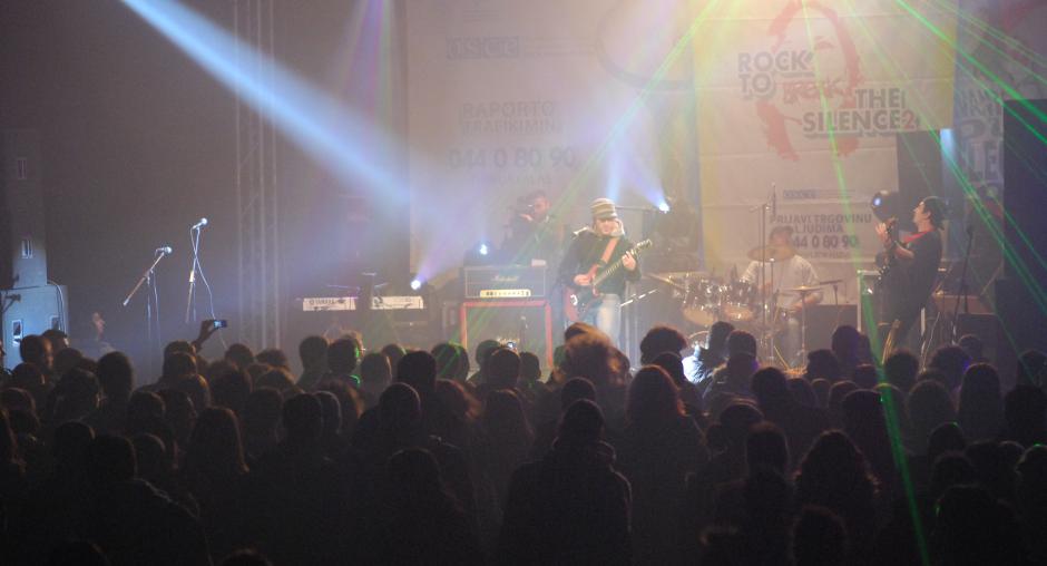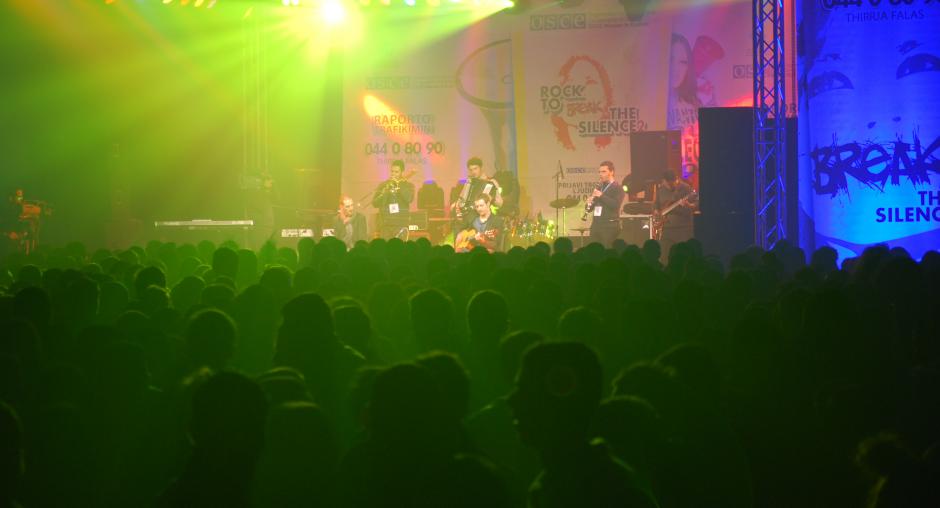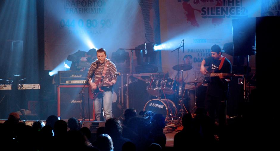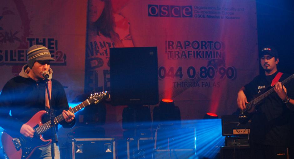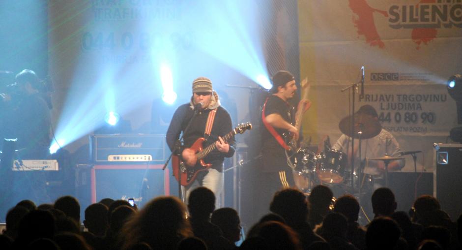 A band performs at the "Rock to break the silence 2! Report human trafficking!" concert to promote Kosovo's anti-trafficking helpline, Mitrovice/Mitrovica, 5 December 2009. (OSCE/Nikola Gaon)