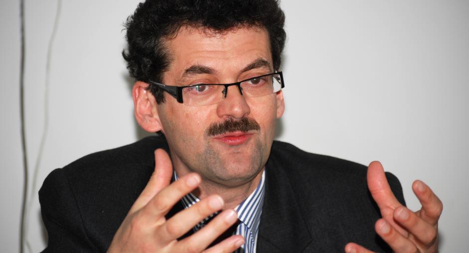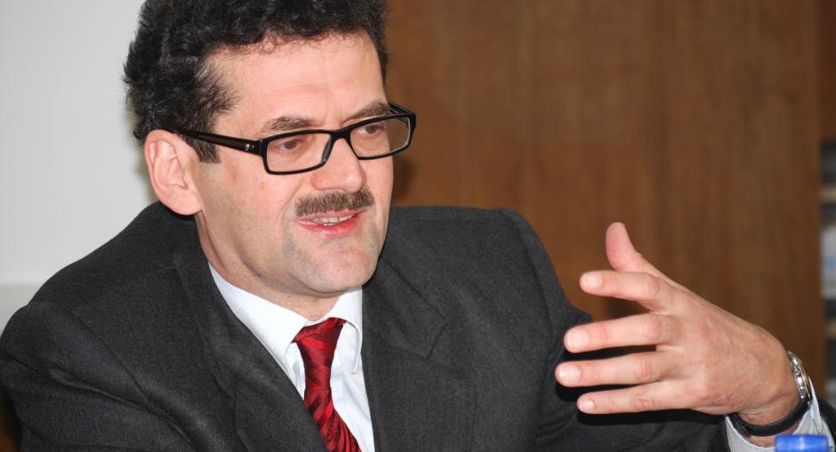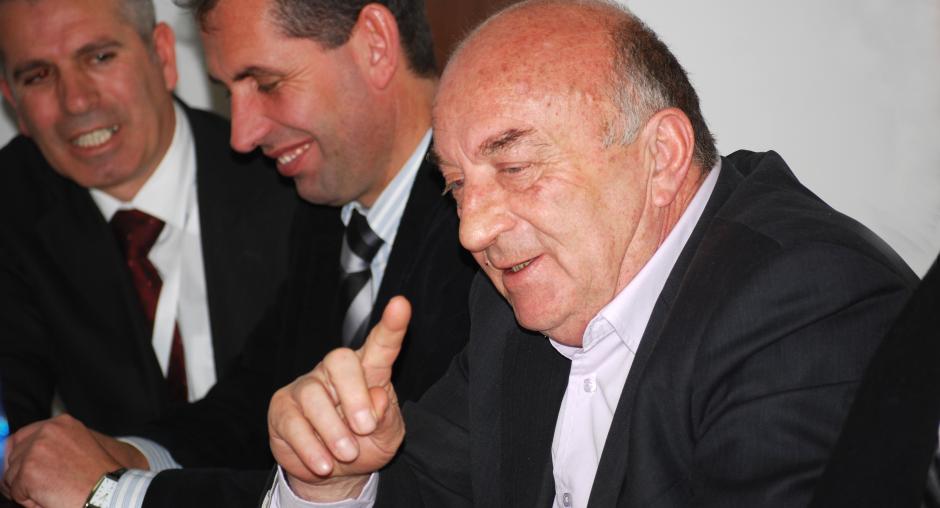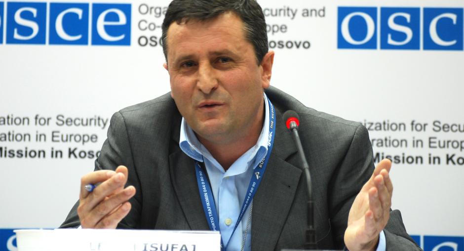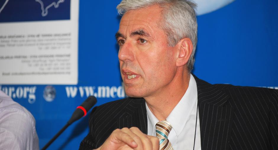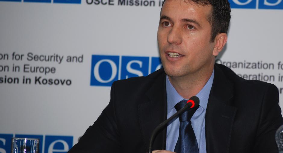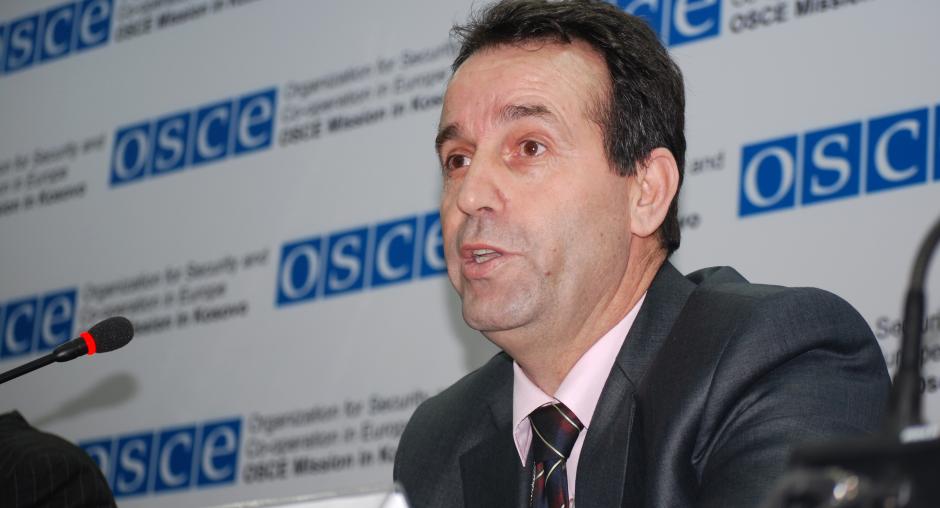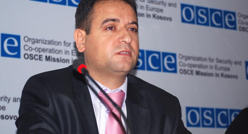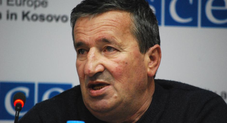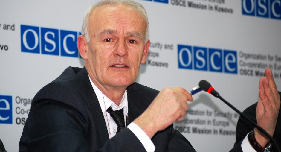 Bahri Hyseni, Head of Kosovo's Assembly Committee for Legislation and Judicial Affairs, gives his view at the launch of the OSCE Mission in Kosovo's campaign in support of the Independent Oversight Board, Prishtine/Pristina, 14 December 2009. (OSCE/Hasan Sopa)