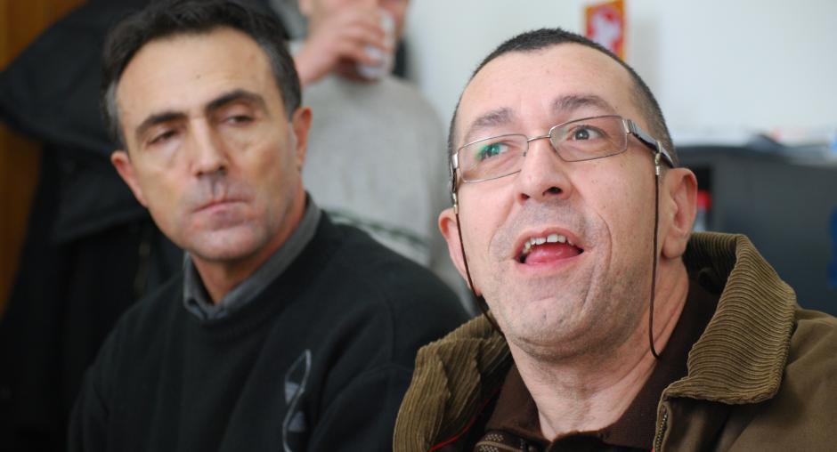 Behxhet Binaku and Faruk Kukaj from the Handikos office in Prishtine/Pristina welcome the opening of their new office within the municipal building of Fushe Kosove/Kosovo Polje supported by the OSCE Mission, Fushe Kosove/Kosovo Polje, 4 February 2010. (OSCE/Hasan Sopa)