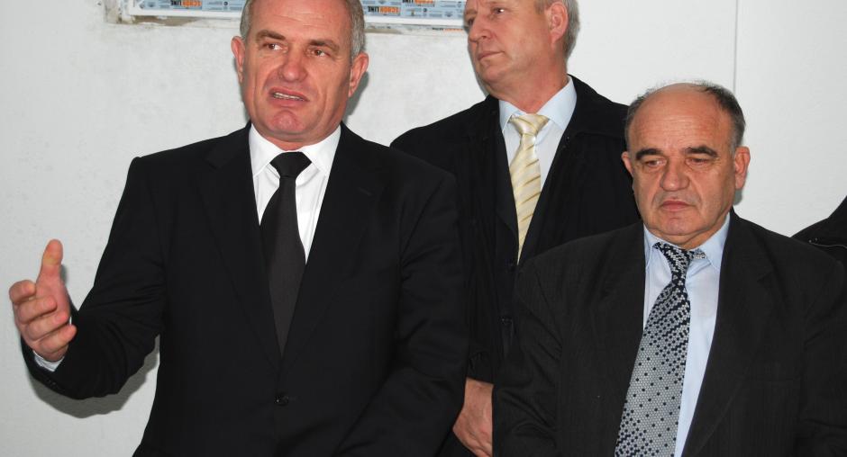 Musa Berisha (l), the outgoing president of the Decan/Decane Municipality, and Jusuf Osmani (r), Chief Executive of the Kosovo Archive Agency, at the inauguration of the new municipal archive supported by the OSCE Mission, Decan/Decane, 22 December 2009. (OSCE/Hasan Sopa)