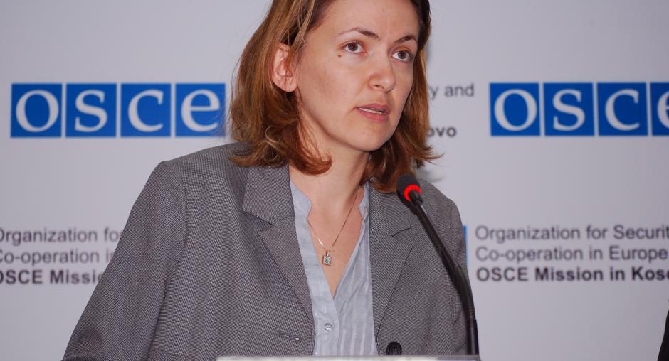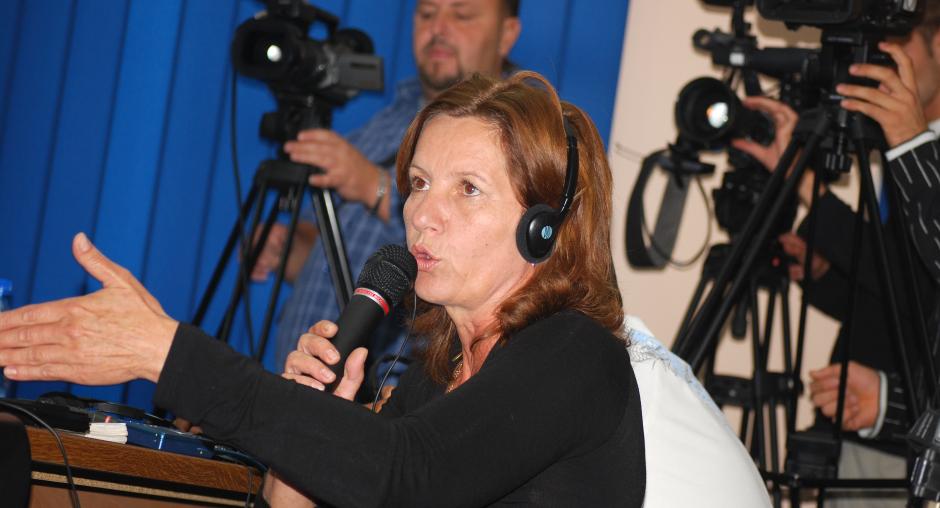 Lirije Osmani, President of the Kosovo Judicial Council, at a roundtable on a report by the OSCE Mission in Kosovo identifying problems as a result of the insufficient number of judges in Kosovo's courts, 23 September 2009. (OSCE/Hasan Sopa)
