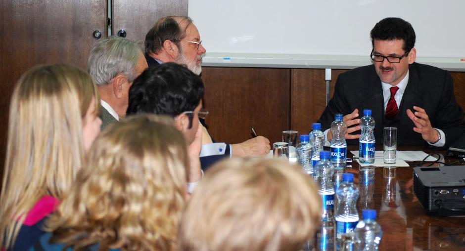 The Head of the OSCE Mission in Kosovo, Ambassador Werner Almhofer, briefs a group of students from Johns Hopkins University during a visit to Mission headquarters in Kosovo, Prishtine/Pristina, 21 January 2010. (OSCE/Hasan Sopa)