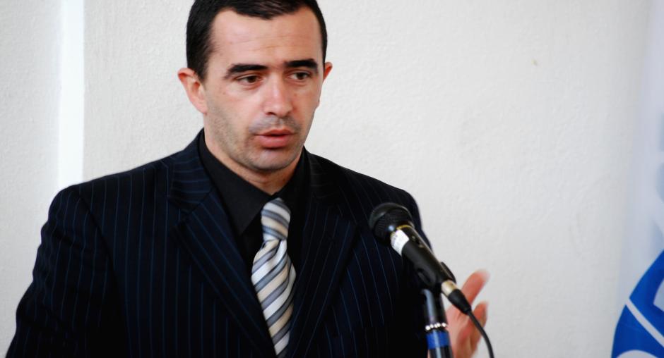 Fatmir Xhelili, Deputy Minister of the Interior and Kosovo's Anti-trafficking Coordinator at a Mission press conference on the launch of the anti-trafficking campaign, Prishtine/Pristina, 26 November 2009 (OSCE/Hasan Sopa)