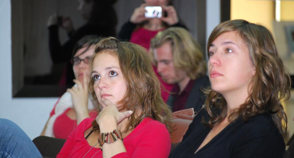 Students from various universities in Germany pose questions at a presentation during their visit to the headquarters of the OSCE Mission in Kosovo, Prishtine/Pristina, 2 October 2009. (OSCE/Hasan Sopa)