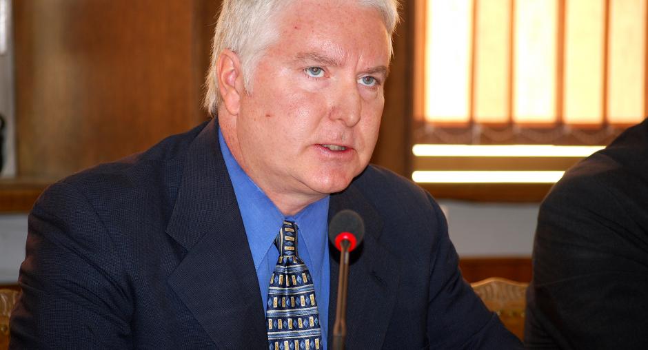 Harold Dampier, chief of the OSCE Mission in Kosovo's Legal System Monitoring Section, at a roundtable on a Mission report identifying problems as a result of the insufficient number of judges in Kosovo's courts, 24 September 2009. (OSCE/Hasan Sopa)