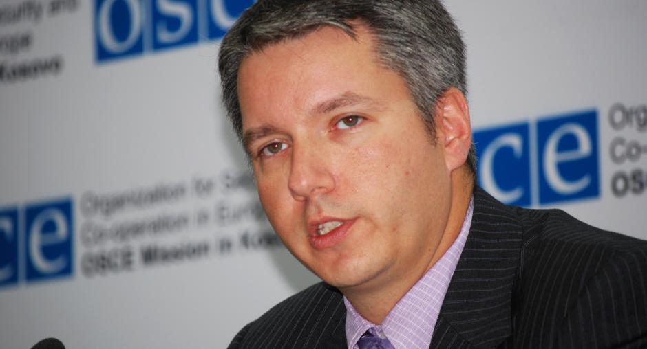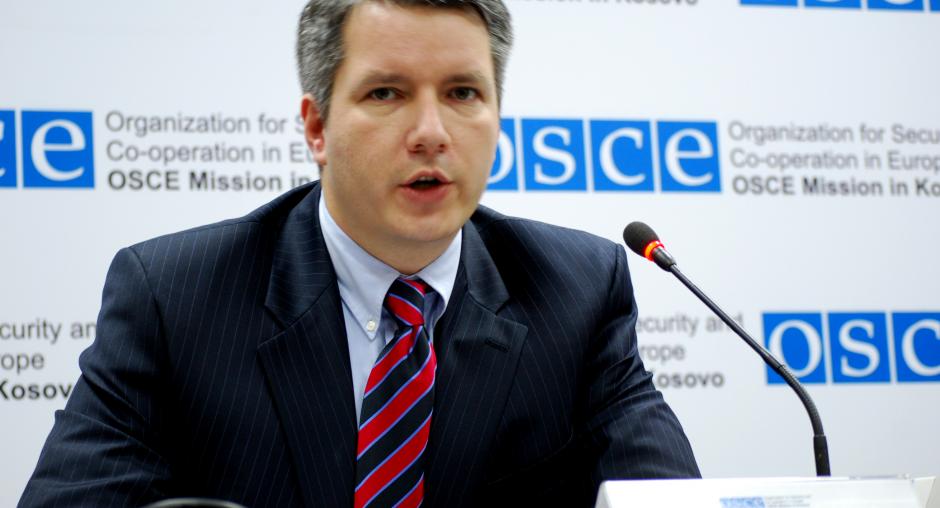 Christopher Decker, Director of the Mission in Kosovo's Human Rights and Communities Department, speaks at a press conference announcing the release of a report on disputes over immovable property rights in Kosovo, Prishtine/Pristina, 6 April 2009. (OSCE/Hasan Sopa)