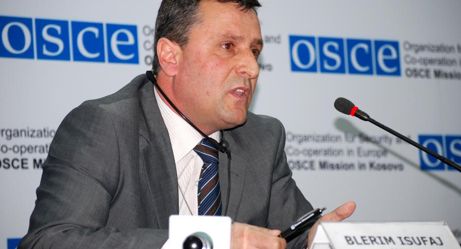 Ismat Kabashi, Kosovo's Supreme Court Prosecutor, addresses a media event on the findings of an OSCE Mission in Kosovo report on detention in criminal proceedings, 15 March 2010. (OSCE/Hasan Sopa)