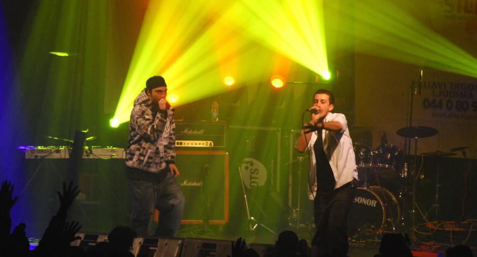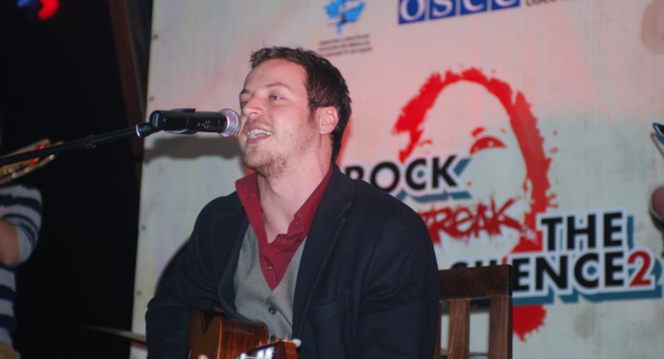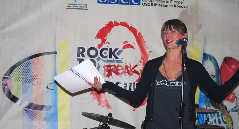 The compere opens a concert in Prizen as part of the information campaign "Rock to break the silence 2! Report human trafficking!" supported by the OSCE Mission to promote Kosovo's anti-trafficking helpline, 4 December 2009. (OSCE/Hasan Sopa)