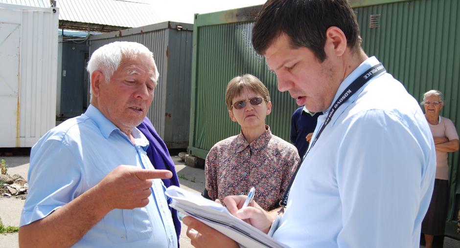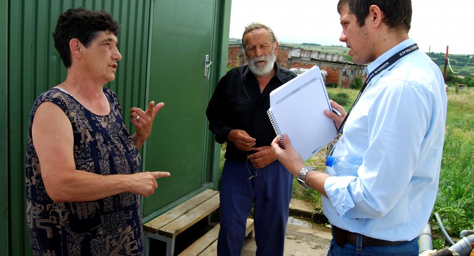 OSCE Mission in Kosovo Senior Public Affairs Officer Nikola Gaon (r), talks to a resident of the Vocar settlement, Gracanice/Gracanica, Kosovo, 18 June 2009. (OSCE/Hasan Sopa)